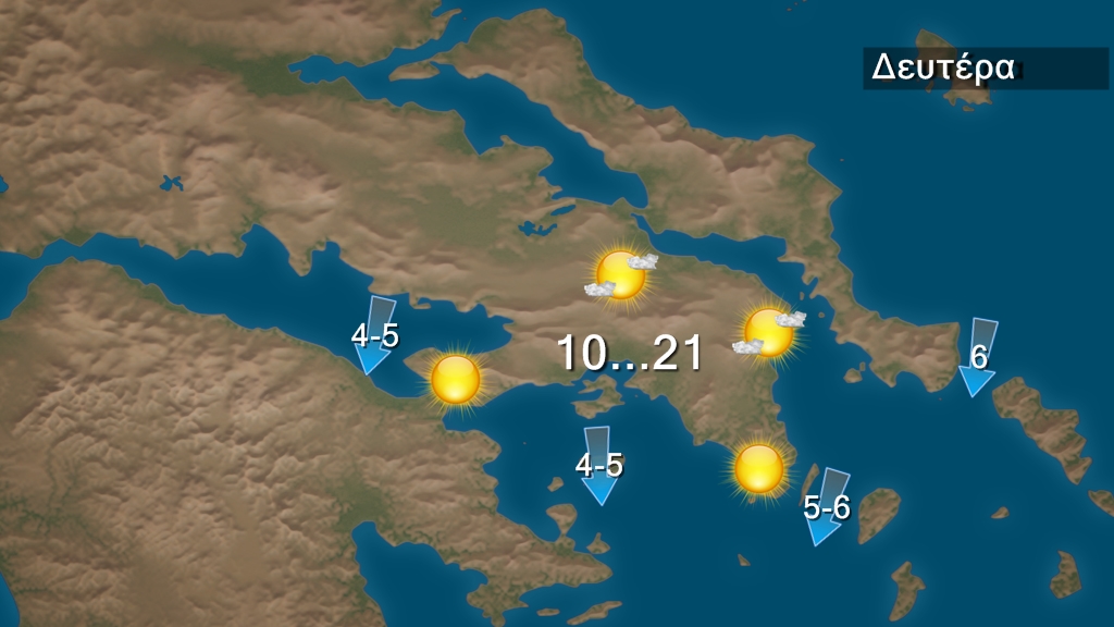 Στην Αττική προβλέπεται σχεδόν αίθριος καιρός . Οι άνεμοι θα πνέουν βορειοανατολικοί 4 με 5 και στα ανατολικά 5 με 6 μποφόρ.  Η  θερμοκρασία θα κυμανθεί από 10 έως 21 βαθμούς Κελσίου.