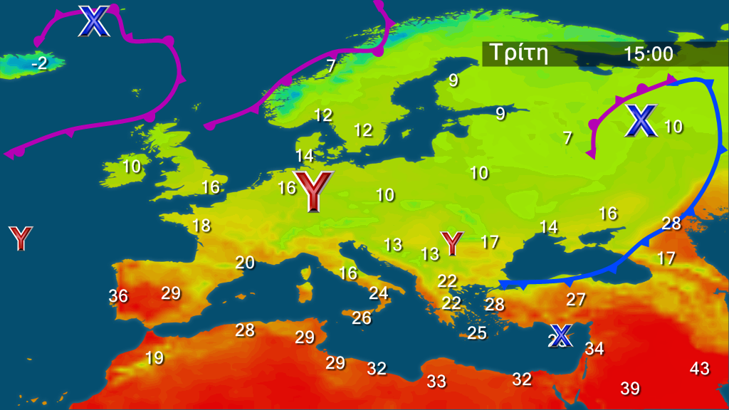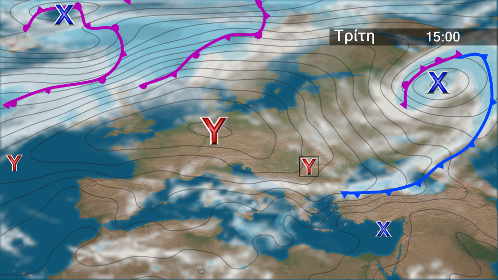 Πέρασε ανατολικότερα το ψυχρό μέτωπο του χαμηλού της βορειοανατολικής Ευρώπης χωρίς να μας επηρεάσει με φαινόμενα.