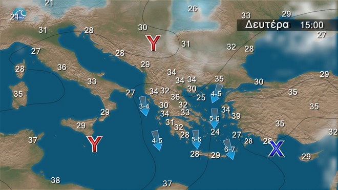 • Οι άνεμοι θα φτάνουν τα 5-6 μποφόρ στο Αιγαίο μέχρι την Κυριακή. Το μελτέμι ενισχύεται από τη Δευτέρα