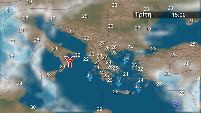 Αίθριος καιρός. Τοπικά περιορισμένη ορατότητα στο Ιόνιο και τα ηπειρωτικά τις πρωινές και βραδινές ώρες. Οι άνεμοι θα πνέουν από βόρειες διευθύνσεις 3 με 4, στο Αιγαίο 4 με 5 και πρόσκαιρα τοπικά 6 μποφόρ. Η θερμοκρασία θα σημειώσει μικρή άνοδο.