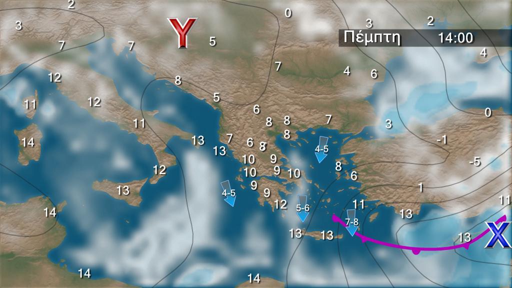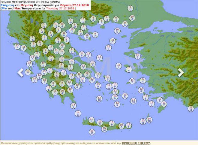 Προβλεπόμενες θερμοκρασίες για την Πέμπτη 27/12