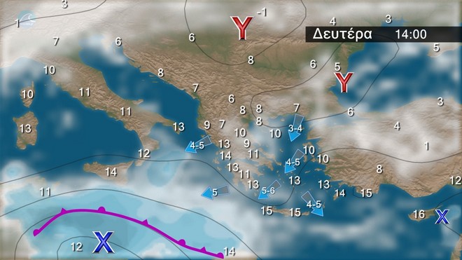 Η θερμοκρασία θα σημειώσει μικρή πτώση στα νότια.