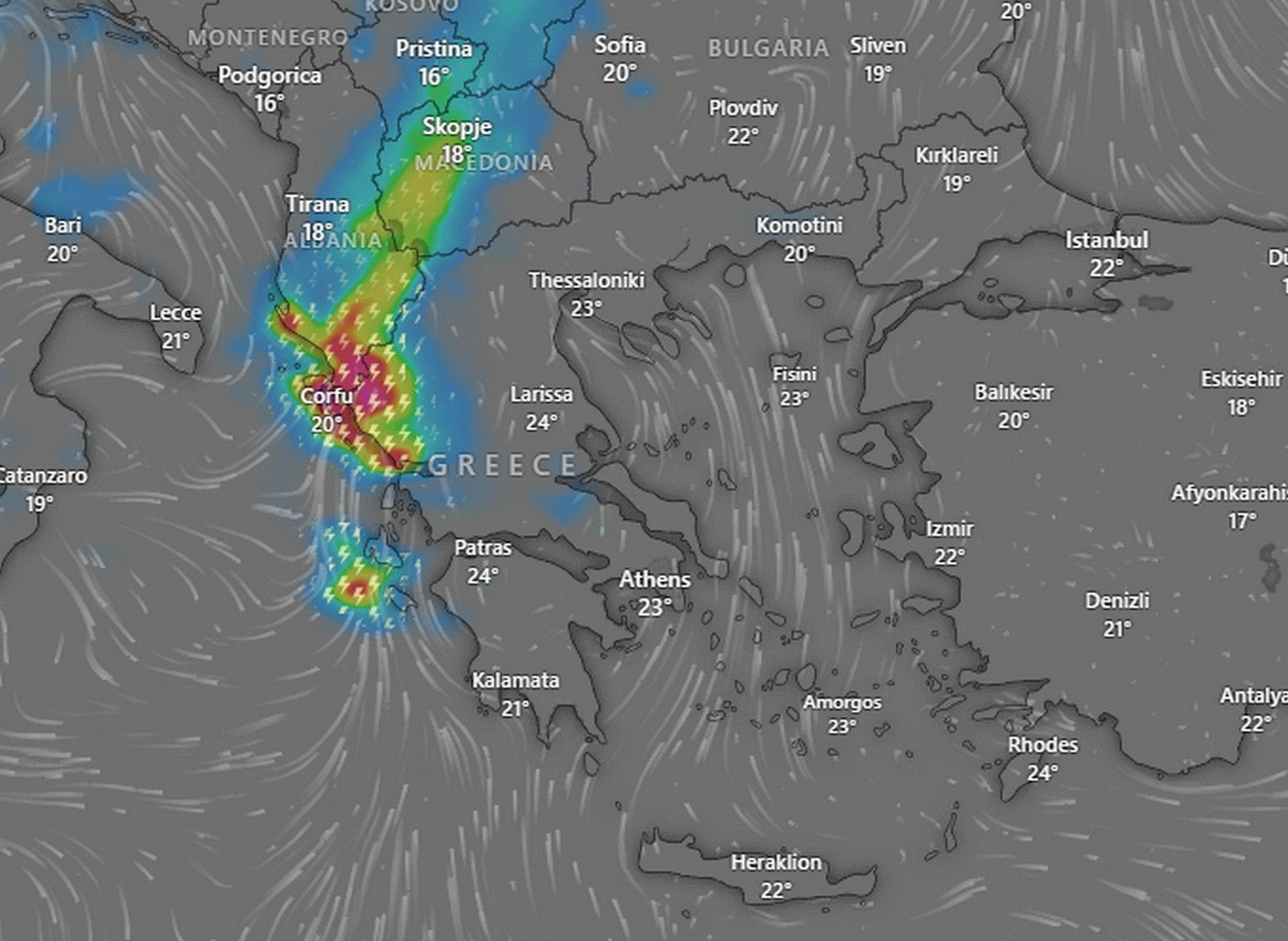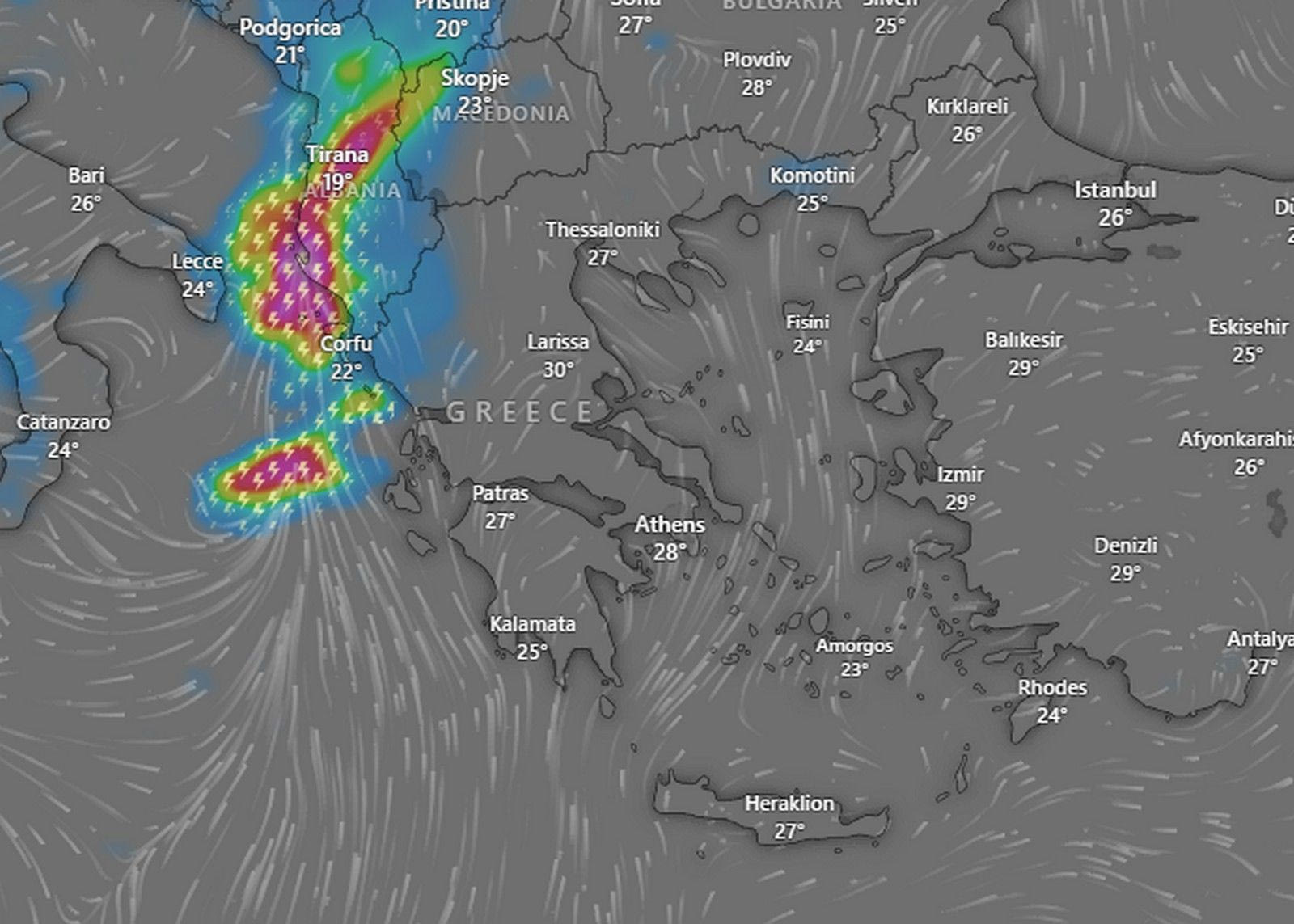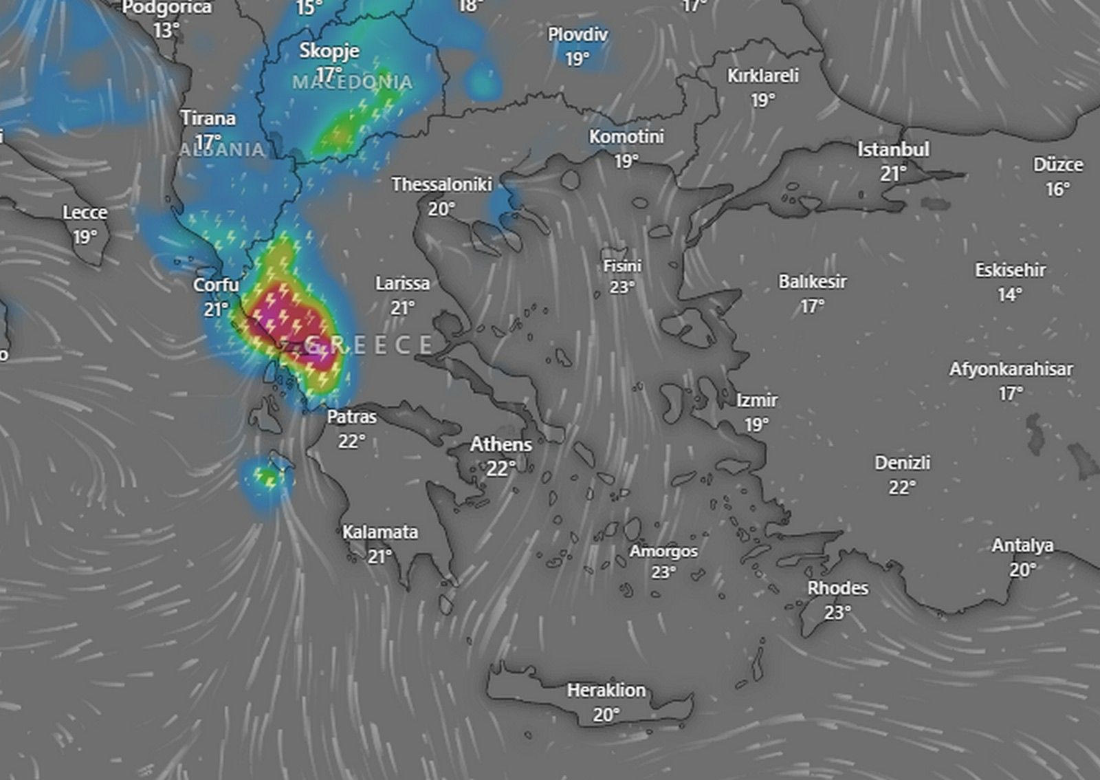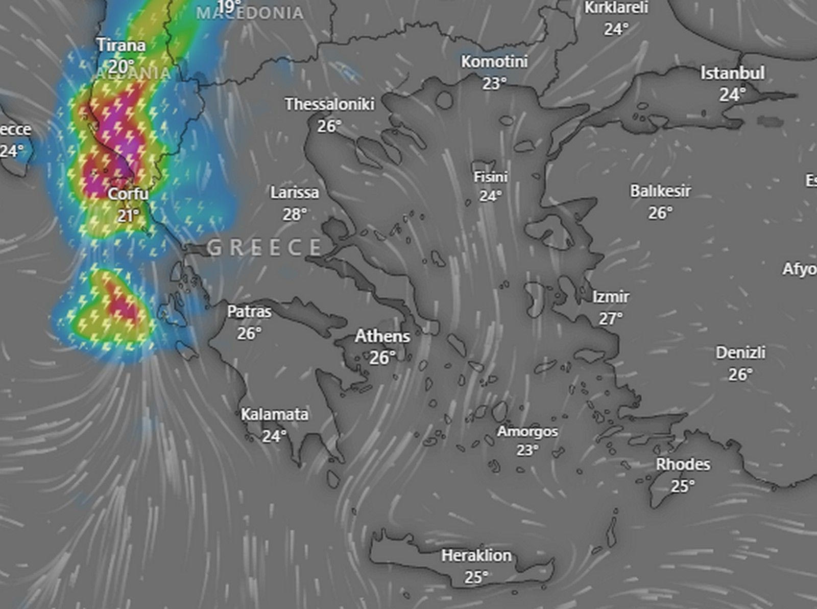 Σε πρώτη φάση τα φαινόμενα θα αρχίσουν από το βόρειο Ιόνιο και την Κέρκυρα όπως και στην Ήπειρο, λίγο μετά το μεσημέρι. Θα σημειωθούν τοπικά ισχυρές βροχές και καταιγίδες.