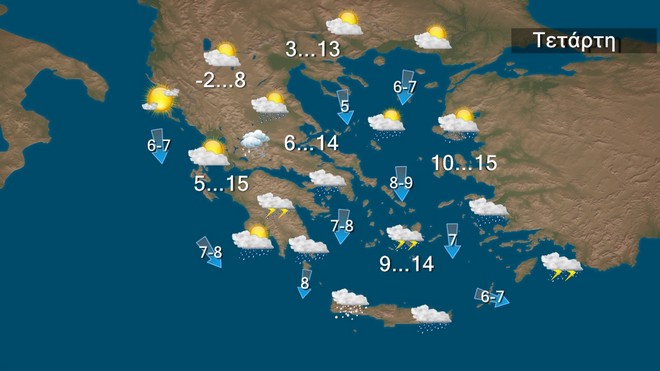 Με βροχές και καταιγίδες θα κυλήσει αρχικά ο καιρός την Τετάρτη σε μεγάλο μέρος της χώρας, αλλά σταδιακά από το μεσημέρι τα έντονα φαινόμενα θα περιοριστούν στα ανατολικά και νότια και από το απόγευμα θα εξασθενήσουν.