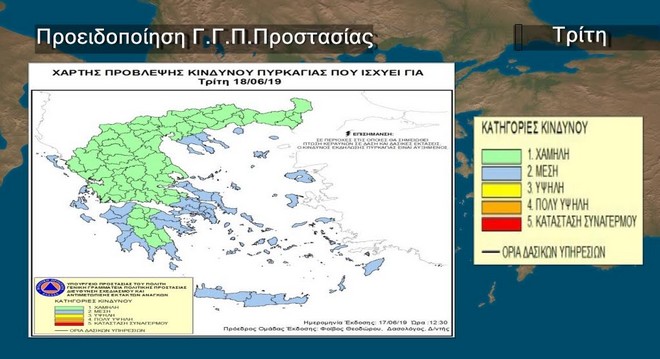 Τοπικά έντονη αστάθεια στα ηπειρωτικά την Τρίτη και θερμοκρασίες σε κανονικά για την εποχή επίπεδα. Δεν αποκλείονται τοπικές χαλαζοπτώσεις σύμφωνα με την πρόγνωση της ΕΜΥ. Μέση κατηγορία κινδύνου για πυρκαγιές σύμφωνα με την πρόγνωση της Γενικής Γραμματείας Πολιτικής Προστασίας.