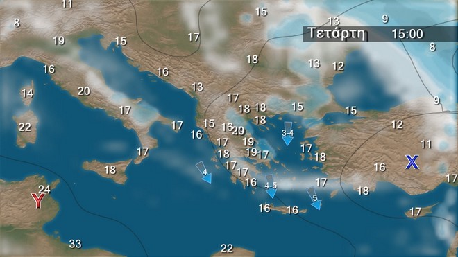 Τις επόμενες ημέρες προβλέπονται νεφώσεις παροδικά αυξημένες με τοπικές βροχές κυρίως στα κεντρικά και τα βόρεια. Η αστάθεια θα αρχίσει να περιορίζεται από την Τρίτη και μετά καθώς θα επικρατήσουν βόρειοι άνεμοι έως 5 μπ. Η θερμοκρασία θα παρουσιάσει μικρή πτώση.