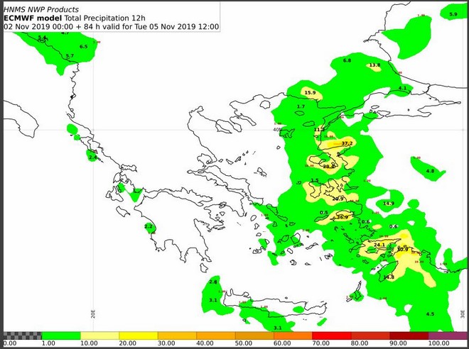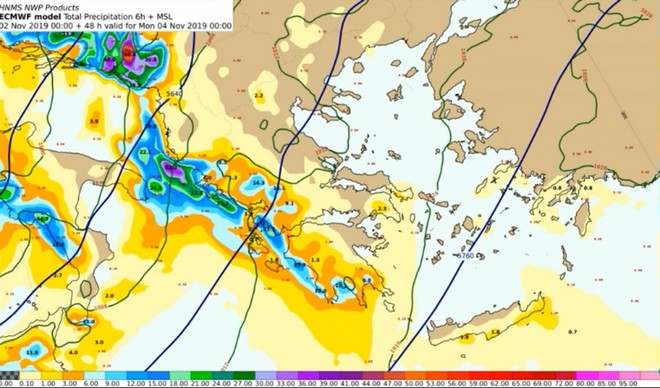3. Τη Δευτέρα (04-11-2019) από νωρίς το πρωί μέχρι τις μεσημβρινές ώρες πρόσκαιρα η Αττική και η Ανατολική Πελοπόννησος.