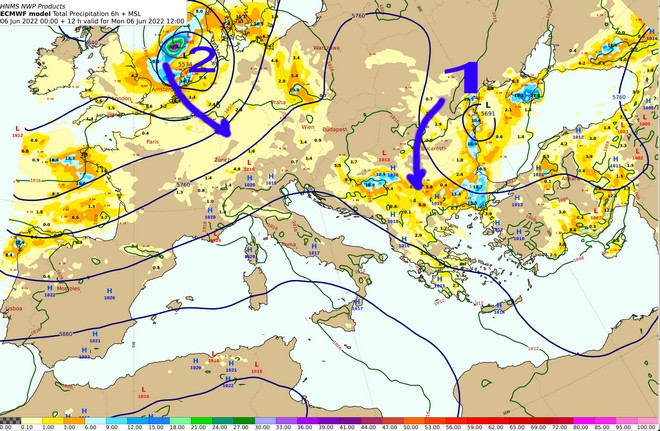 Σήμερα Δευτέρα (06-06- 2022) ισχυρές βροχές και καταιγίδες προβλέπονται στην κεντρική και την ανατολική Μακεδονία και τη Θράκη από το μεσημέρι και μέχρι και τις βραδινές ώρες. Ανάλογα φαινόμενα θα εκδηλωθούν κατά τόπους στη Θεσσαλία, την κεντρική και ανατολική Στερεά και την κεντρική και ανατολική Πελοπόννησο από το μεσημέρι μέχρι και το απόγευμα.