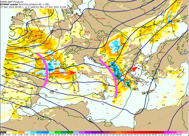 Στα μέσα της εβδομάδος θα δημιουργηθεί αποκομμένο ανώτερο χαμηλό στον χάρτη των 500 hPa και τα φαινόμενα που θα ξεκινήσουν σήμερα Δευτέρα από τα δυτικά, την Πέμπτη θα αρχίσουν να περιορίζονται στα ανατολικά. Όπως μπορείτε να παρακολουθήσετε στο Tweet που ακολουθεί, το ανώτερο χαμηλό απομακρύνεται νοτιοανατολικά από την Πέμπτη και μετά και έτσι ο καιρός θα βελτιωθεί την Παρασκευή, παραμονή της Πρωτοχρονιάς, σε όλη τη χώρα. Σύμφωνα με τα τελευταία δεδομένα ο καιρός ανήμερα την Πρωτοχρονιά θα είναι σχεδόν αίθριος στις περισσότερες περιοχές.