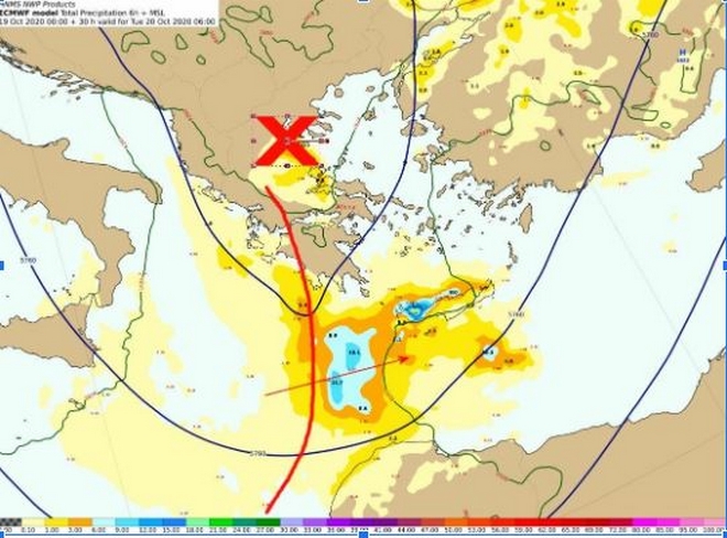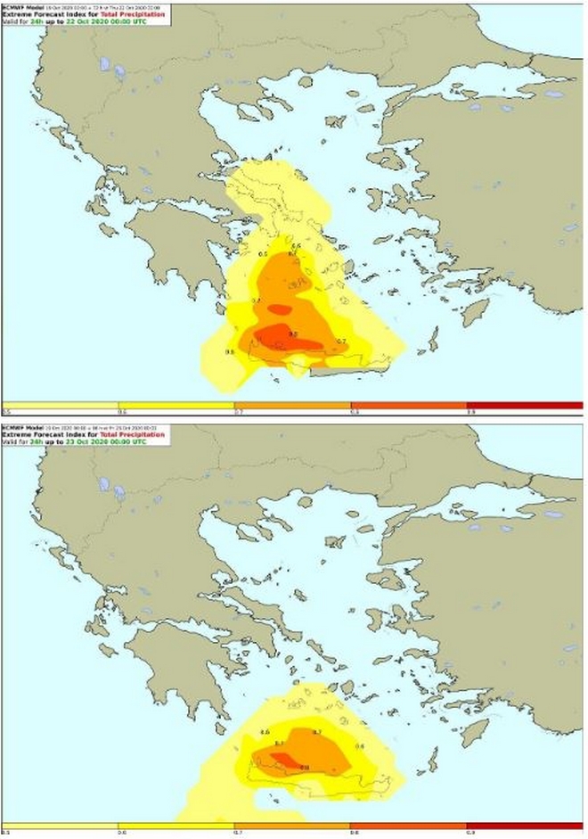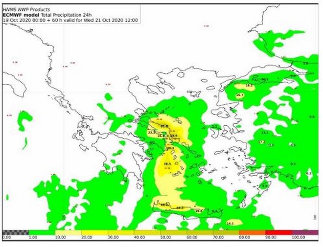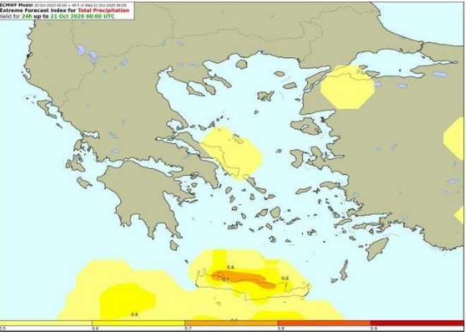 1. Από νωρίς το πρωί της Τρίτης (20-10-2020) η Κρήτη και πιθανώς πρόσκαιρα τα νότια τμήματα της Πελοποννήσου.