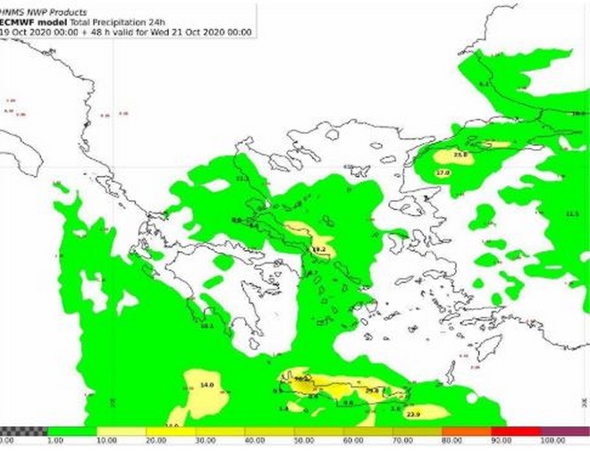 3. Εξασθένηση των φαινομένων αναμένεται από την Πέμπτη (22-10-2020) το πρωί στις βορειότερες περιοχές και από το απόγευμα στην Κρήτη.