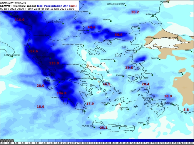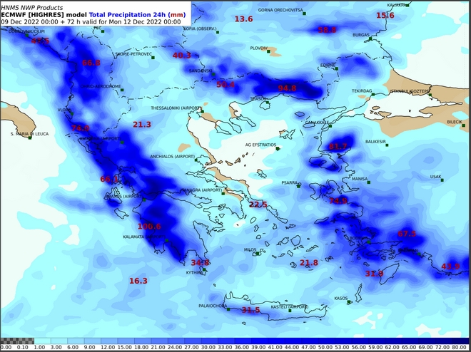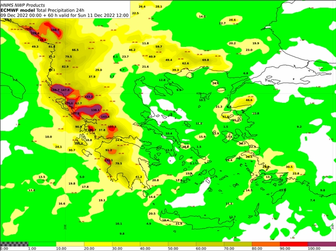 Στο παραπάνω βίντεο διακρίνεται η κίνηση του συστήματος που θα μας επηρεάσει και ανά 3ωρο παρουσιάζονται τα ύψη βροχής 6ωρου. Επισημαίνεται ότι από το απόγευμα του Σαββάτου (10-12-2022) οι ισχυρές βροχές και οι καταιγίδες θα επηρεάσουν τα νησιά του Ιονίου, την Ήπειρο, τη δυτική Στερεά, από το βράδυ στη δυτική Πελοπόννησο, τη δυτική Μακεδονία, τα δυτικά τμήματα της Θεσσαλίας, την κεντρική Στερεά και από τη νύχτα στην ανατολική Πελοπόννησο (κυρίως στα νότια τμήματά της).