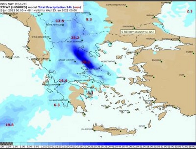 Σύμφωνα με τα τελευταία προγνωστικά δεδομένα το σύστημα αυτό καθώς στροβιλίζεται, θα κινηθεί ανατολικά και θα μας επηρεάσει από τα μέσα της εβδομάδος και μετά. Προς το παρόν το Έκτακτο Δελτίο Επιδείνωσης Καιρού που εκδόθηκε στις 19 Ιανουαρίου 2023 επικαιροποιείται σύμφωνα με τα τελευταία προγνωστικά στοιχεία (της Δευτέρας).