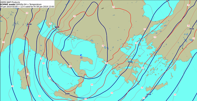 Σε αυτό βοήθησε και το ότι το ανώτερο χαμηλό στην στάθμη των 500 hPa βρισκόταν στα ΒΔ της χώρας μας.
