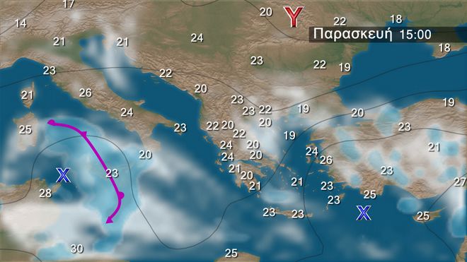 Διατηρείται ο ισχυρός αντικυκλώνας ο οποίος καλύπτει όλη την Κεντρική και την Ανατολική Ευρώπη εμποδίζει τα συστήματα που σχηματίζονται στον Ατλαντικό να κινηθούν ανατολικότερα. Έτσι αυτά αναγκάζονται να περάσουν από τα βόρεια κράσπεδα του βαρομετρικού υψηλού. Τα συστήματα της Μεσογείου εξασθενούν καθώς κινούνται προς τη χώρα μας.