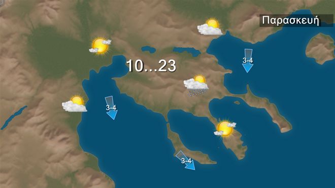Σήμερα, Παρασκευή, ο καιρός προβλέπεται παροδικά νεφελώδης στα ανατολικά και τα νότια όπου θα εκδηλωθούν τοπικές βροχές. Οι βοριάδες θα ενισχυθούν και θα φτάσουν τα 7-8 μποφόρ.