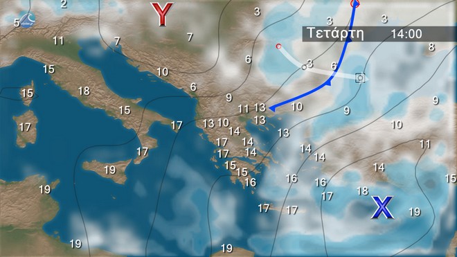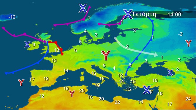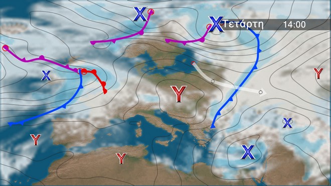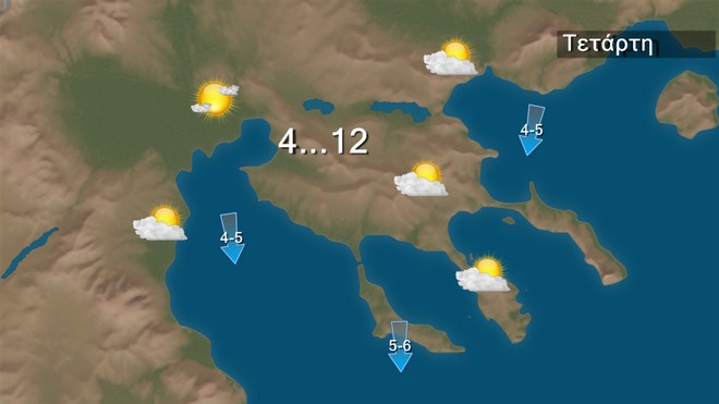 Με τοπικές νεφώσεις θα κυλήσει ο καιρός την Τετάρτη σε μεγάλο μέρος της χώρας με τοπικές βροχές κυρίως στα ανατολικά. Στον χάρτη των βαρομετρικών συστημάτων της Ευρώπης παρατηρούμε ότι υπάρχει μετωπική δραστηριότητα βόρεια της χώρας μας και το μέτωπο καθώς διέρχεται ανατολικά θα ενισχύσει τον αντικυκλώνα στα βορειοδυτικά Βαλκάνια με αποτέλεσμα; Την ενίσχυση των ανέμων στο Αιγαίο. Οι θερμοκρασίες αν και θα πέσουν λίγο θα κυμαίνονται σε κανονικά επίπεδα για την εποχή.