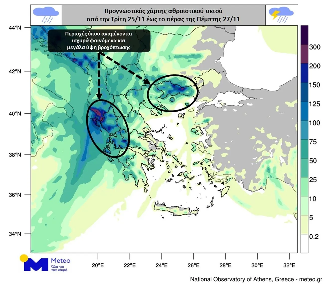 Σημαντικές βροχοπτώσεις αναμένονται και από την Παρασκευή 28/11, σχετικά με τις οποίες θα ακολουθήσουν επικαιροποιημένες ανακοινώσεις.