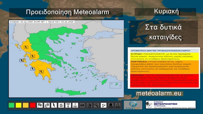 συνοδεύονται πρόσκαιρα, από χαλαζοπτώσεις και ισχυρούς ανέμους. Από αργά το απόγευμα της Κυριακής μέχρι το βράδυ της Δευτέρας θα επηρεαστούν τα νησιά του Ιονίου, η Ήπειρος, η δυτική Στερεά και σταδιακά η δυτική και η νότια Πελοπόννησος. Από τις απογευματινές ώρες της Δευτέρας μέχρι και το πρωί της Τρίτης ισχυρές βροχές και καταιγίδες θα εκδηλωθούν στη Θράκη, τα νησιά του ανατολικού Αιγαίου και τα Δωδεκάνησα.