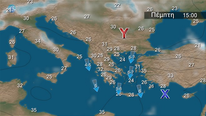 - Οι άνεμοι θα φτάνουν τα 5-6 και τοπικά τα 7 μποφόρ