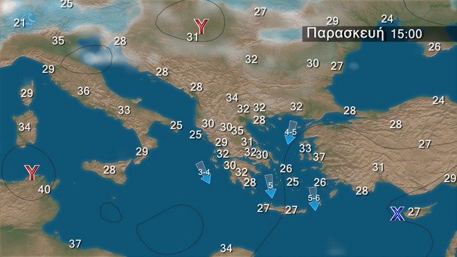 Θα διατηρηθεί ο καλοκαιρινός καιρός όλη την εβδομάδα με άνοδο της θερμοκρασίας από την Παρασκευή και τοπικά θα φτάσει περί τους 38 βαθμούς στα ηπειρωτικά. Τα μελτέμια θα εξασθενήσουν σημαντικά από την Παρασκευή και κυρίως το Σαββατοκύριακο.