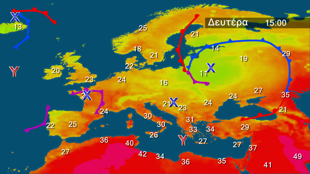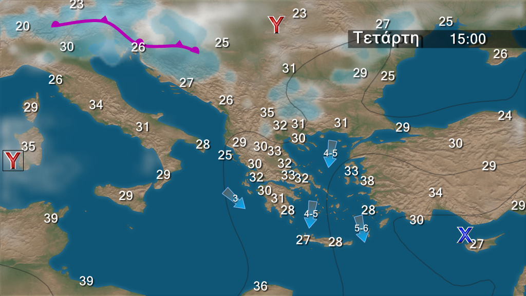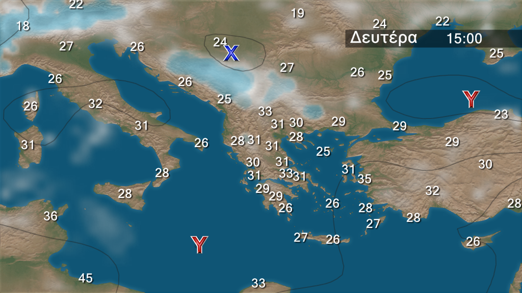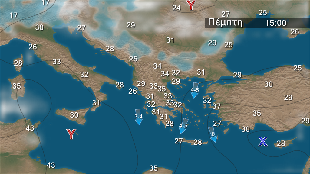 Ομαλό βαρομετρικό πεδίο υψηλών πιέσεων θα καλύψει τη χώρα μας και αυτό θα έχει σαν αποτέλεσμα να διατηρηθεί ο σχεδόν αίθριος καιρός, ενώ αντίθετα στη βορειοανατολική Ευρώπη που επηρεάζεται από ισχυρό βαρομετρικό χαμηλό θα εκδηλωθούν τοπικά έντονα φαινόμενα.