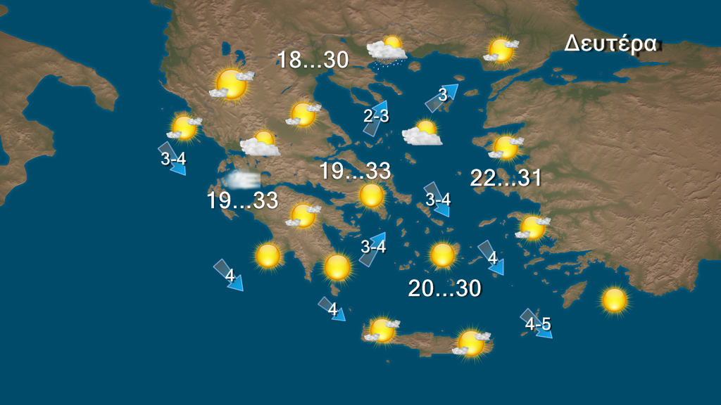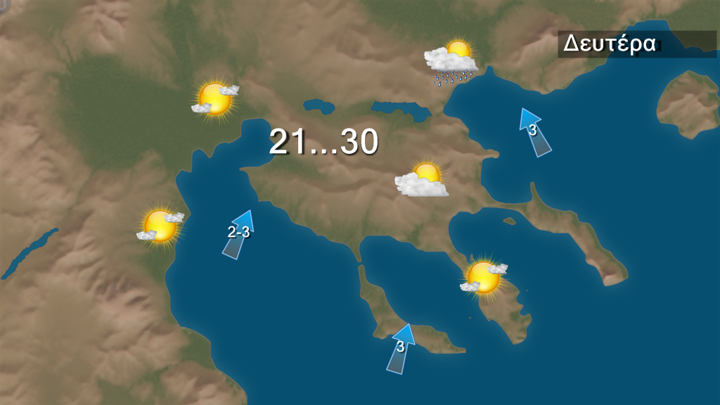 Σε όλη τη χώρα σχεδόν αίθριος καιρός και μόνο στα ορεινά της ανατολικής Μακεδονίας και Θράκης θα εκδηλωθεί περιορισμένη αστάθεια το μεσημέρι και το απόγευμα. Η θερμοκρασία θα ανέβει και θα φτάσει ακόμη και τους 32 βαθμούς Κελσίου τοπικά στη Κεντρική και Νότια ηπειρωτική χώρα.