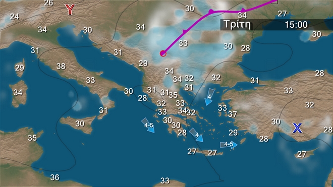 Ο άστατος καιρός θα διατηρηθεί και το επόμενο τριήμερο κυρίως στα κεντρικά και τα Βόρεια ενώ στα υπόλοιπα ο καιρός θα βελτιωθεί . Παράλληλα προβλέπεται πρόσκαιρη άνοδος της θερμοκρασίας, ενώ οι άνεμοι δεν θα ξεπερνούν τα 6 μποφόρ. Ενίσχυση των ανέμων από την Παρασκευή όπου τοπικά το μελτέμι θα φτάσει τα 7 μποφόρ στο Αιγαίο.