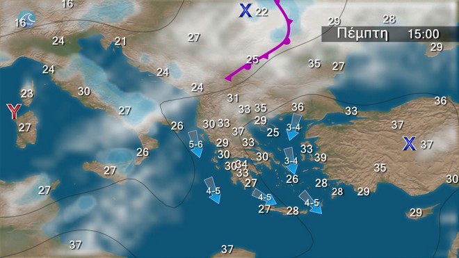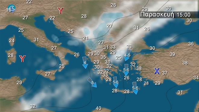 Στη Μακεδονία και τη Θράκη νεφώσεις τοπικά αυξημένες με σποραδικούς όμβρους και μεμονωμένες καταιγίδες κυρίως τις μεσημβρινές-απογευματινές ώρες. Στα υπόλοιπα γενικά αίθριος καιρός με πρόσκαιρες νεφώσεις από το μεσημέρι στην Ήπειρο, τη Θεσσαλία και τη Στερεά. Οι άνεμοι θα πνέουν από βόρειες διευθύνσεις 3 με 5 και στα πελάγη 6 τοπικά 7 μποφόρ. Η θερμοκρασία δε θα σημειώσει αξιόλογη μεταβολή.