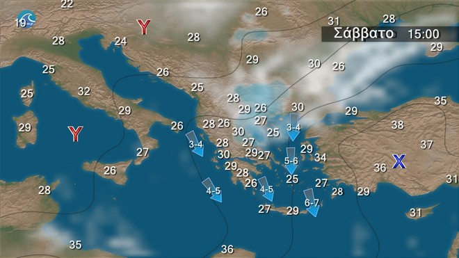 Στα δυτικά και τα βόρεια λίγες νεφώσεις που από το μεσημέρι κατά τόπους θα αυξηθούν και στα ορεινά της Μακεδονίας και της Θράκης είναι πιθανό να εκδηλωθούν σποραδικοί όμβροι. Στις υπόλοιπες περιοχές αίθριος καιρός. Οι άνεμοι θα πνέουν στα δυτικά και τα νότια δυτικοί βορειοδυτικοί 4 με 5 και στο Ιόνιο τις πρωινές ώρες έως 6 μποφόρ. Στις υπόλοιπες περιοχές μεταβλητοί ασθενείς και πρόσκαιρα στη Μακεδονία βόρειοι έως 5 μποφόρ. Η θερμοκρασία θα σημειώσει πτώση κυρίως στα δυτικά και τα βόρεια..