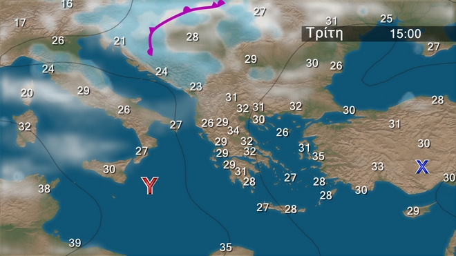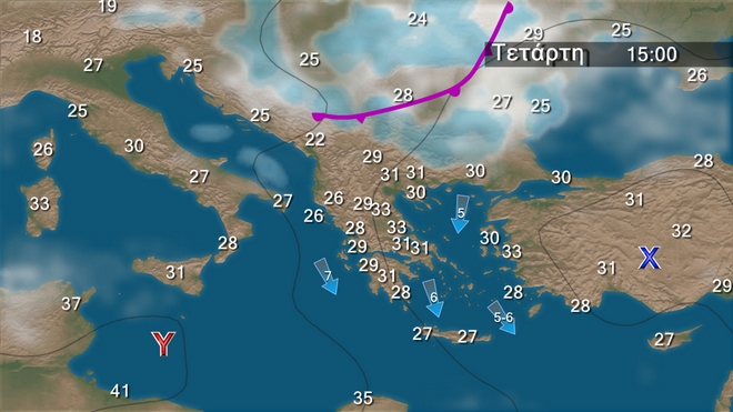 Την Τετάρτη θα εκδηλωθούν βροχές και καταιγίδες στα βορειοανατολικά κυρίως το μεσημέρι και το απόγευμα. Στην υπόλοιπη χώρα θα επικρατήσει σχεδόν αίθριος καιρός με πιθανότητα εκδήλωσης φαινομένων και η θερμοκρασία θα πέσει ακόμη λίγο στα βόρεια.