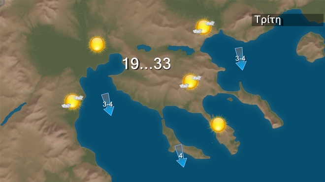Σήμερα προβλέπεται γενικά αίθριος καιρός ωστόσο τοπικοί όμβροι θα σημειωθούν στα βόρεια ορεινά τις μεσημβρινές και απογευματινές ώρες.