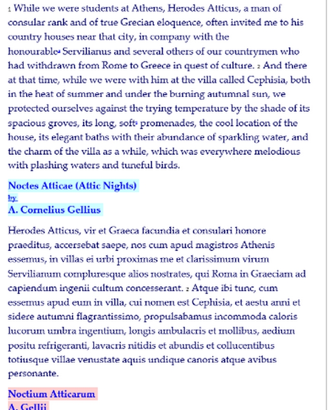 Απόσπασμα από τις «Αττικές Νύκτες» στα Αγγλικά και Λατινικά