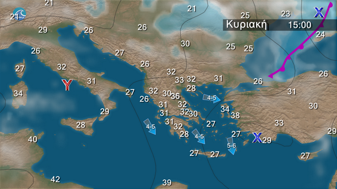 Η ισχυρή θερμή μεταφορά θα συνοδευτεί από τους δυτικούς νοτιοδυτικούς καταβατικούς ανέμους τη Θεσσαλία (ο γνωστός μας λίβας) και στην Ανατολική Στερεά και αυτό θα έχει σαν αποτέλεσμα να έχουμε πολλές περιοχές με τον υδράργυρο πάνω από τους 40 βαθμούς Κελσίου