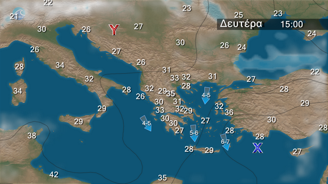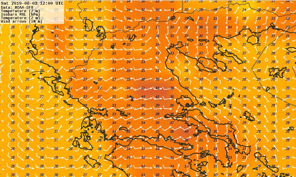 Η θερμοκρασία θα κυμανθεί σε υψηλά επίπεδα και στη Θεσσαλία, τη Φθιώτιδα, τη Βοιωτία και την ανατολική Πελοπόννησο θα φτάσει κατά τόπους τους 40 με 41 και πιθανόν στη Θεσσαλία τους 42 βαθμούς Κελσίου.