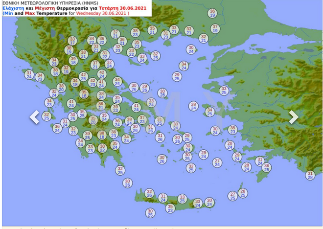 Όλο αυτό το μέγιστο των υψηλών θερμοκρασιών θα περάσει πάνω από τη χώρα μας το τριήμερο Τετάρτης –Παρασκευής που και πάλι θα έχουμε νέα κορύφωση του καύσωνα με ανάλογες περίπου τιμές με τον προηγούμενο . Η μόνη διαφορά θα είναι ότι με το δυτικό ρεύμα που θα επικρατήσει, θα έχουμε πολλές πλέον περιοχές της ανατολικής ηπειρωτικής Ελλάδος να επηρεάζονται από τους δυτικούς καταβατικούς ανέμους. Την Τετάρτη κατά μέσο όρο στα ηπειρωτικά θα φτάσει κατά τόπους τους 40 με 41 βαθμούς Κελσίου όπως σημειώνει και η ΕΜΥ στην πρόγνωση πολλών ημερών.
