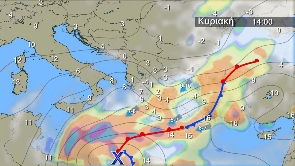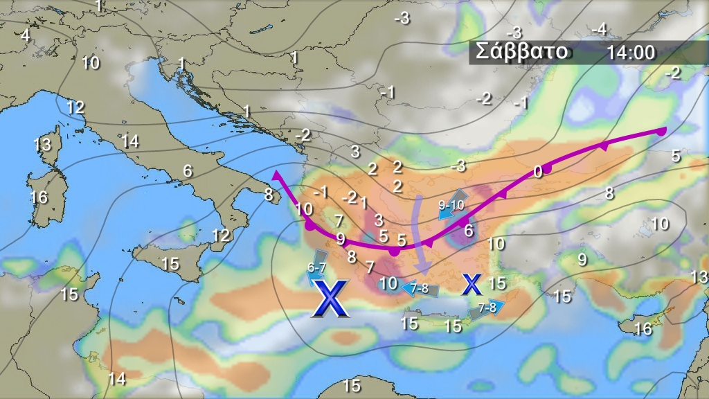 Ραγδαία η αλλαγή του καιρού από σήμερα, Παρασκευή. Το Σαββατοκύριακο θα οργανωθεί ισχυρό χαμηλό στο νότιο Αιγαίο που θα προκαλέσει πτώση της θερμοκρασίας κατά 10 με 12 περίπου βαθμούς και θα έχουμε 8 με 9 και τοπικά ακόμη και 10 μποφόρ με βοριάδες στο Αιγαίο και χιόνια σε ορεινά ημιορεινά αλλά και σε περιοχές με χαμηλότερο υψόμετρο.