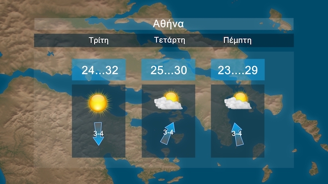 Στην Αθήνα προβλέπονται τοπικές νεφώσεις. Η θερμοκρασία θα έχει μέγιστες τιμές περί τους 29 με 32 βαθμούς Κελσίου.