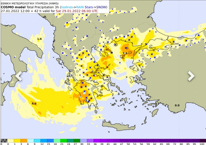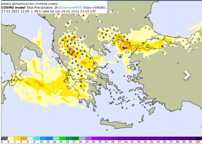 - Βροχές και σποραδικές καταιγίδες θα εκδηλωθούν από νωρίς το πρωί του Σαββάτου (29/1) στα νησιά του Ιονίου (πλην της Κέρκυρας), τη δυτική Στερεά και βαθμιαία στη δυτική Πελοπόννησο. Τα φαινόμενα στα βόρεια από το απόγευμα θα εξασθενήσουν, ενώ στην Πελοπόννησο από αργά το βράδυ.