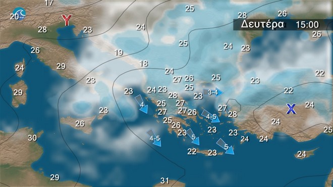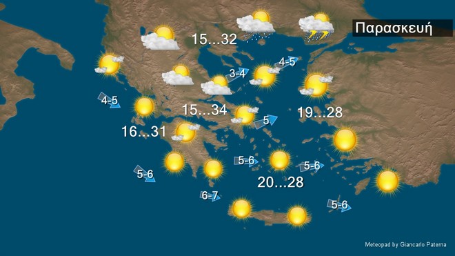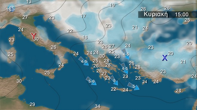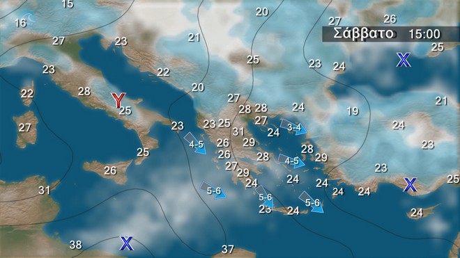 • Οι άνεμοι θα φτάνουν τα 4-5 και στα νότια τοπικά τα 6 μποφόρ