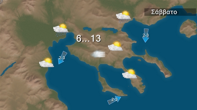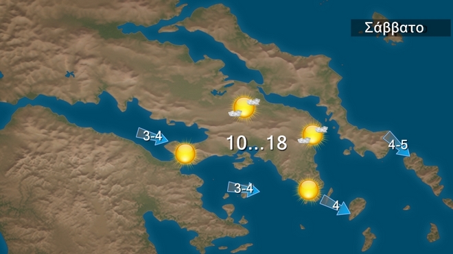 Το Σάββατο στα δυτικά, τα βόρεια και βαθμιαία στην ανατολική νησιωτική χώρα τοπικές βροχές. Στις υπόλοιπες περιοχές θα επικρατήσει βελτιωμένος καιρός. Τις πρωινές ώρες αλλά και κατά την διάρκεια της νύχτας θα υπάρχει περιορισμένη ορατότητα και θα σημειωθούν τοπικές ομίχλες κυρίως στα ηπειρωτικά.