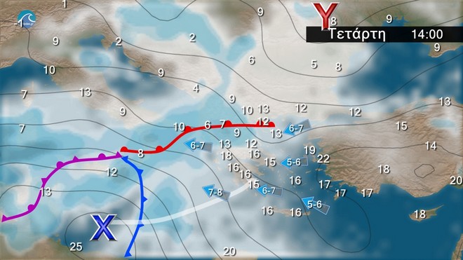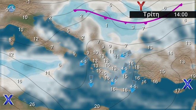 στρεφόμενοι βαθμιαία στα δυτικά, τα κεντρικά και τα βόρεια σε βορείωνδιευθύνσεων 5 με 7 μποφόρ.Η θερμοκρασία θα σημειώσει πτώση στα κεντρικά και βόρεια.