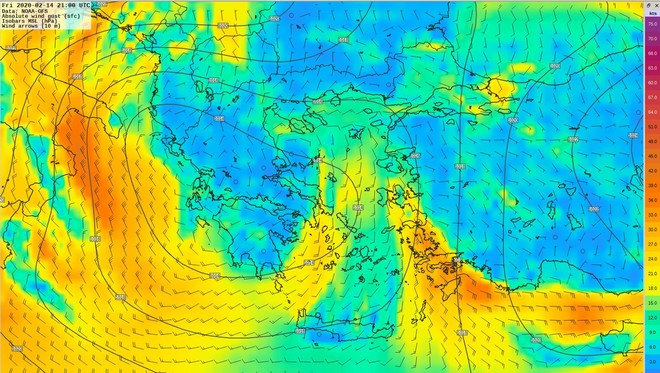 Οι άνεμοι στα δυτικά, κεντρικά και βόρεια θα πνέουν από βόρειες διευθύνσεις 5 με 7 και στα πελάγη τοπικά 8 μποφόρ. Στην υπόλοιπη χώρα, από νότιες διευθύνσεις 5 με 7 που βαθμιαία θα στραφούν σε βοριάδες 6 με 8 μποφόρ και το απόγευμα στο Αιγαίο πιθανώς πρόσκαιρα 9 μποφόρ. Η θερμοκρασία θα σημειώσει πτώση στα ανατολικά και τα νότια.
