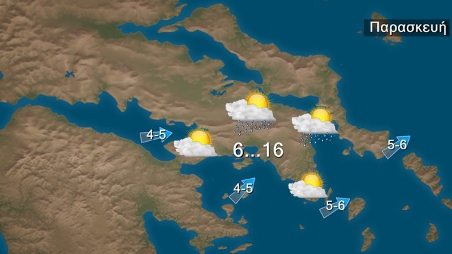 Στην Αττική προβλέπονται νεφώσεις παροδικά αυξημένες με τοπικές βροχές τις πρωινές και τις βραδινές ώρες. Οι άνεμοι θα πνέουν νοτιοδυτικοί 4 με 6 μποφόρ που βαθμιαία θα εξασθενήσουν και από το απόγευμα θα στραφούν σε ανατολικούς 4 με 5 μποφόρ. Η θερμοκρασία θα κυμανθεί από 6 έως 16 βαθμούς Κελσίου.