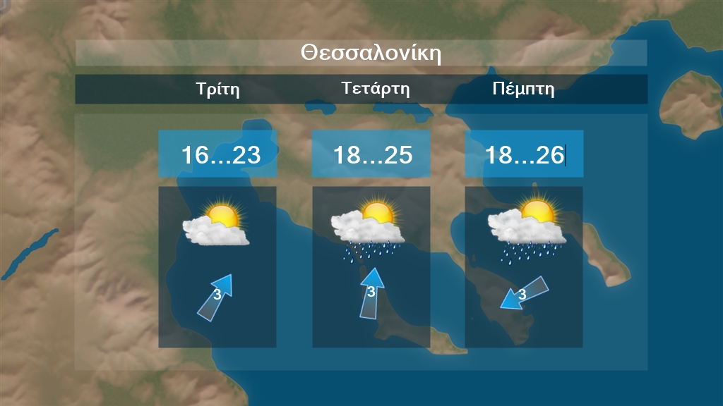 Στη Θεσσαλονίκη προβλέπεται άστατος καιρός την Τετάρτη και Πέμπτη. Η θερμοκρασία θα έχει μέγιστες τιμές περί τους 23 με 26 βαθμούς Κελσίου .