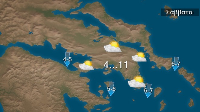 Λίγες νεφώσεις πρόσκαιρα αυξημένες μέχρι το μεσημέρι αναμένονται στην Αθήνα το Σάββατο. Οι άνεμοι θα πνέουν βόρειοι βορειοανατολικοί 4 με 5 και στα ανατολικά τοπικά 6 και πρόσκαιρα έως 7 μποφόρ, με βαθμιαία εξασθένηση από τις μεσημβρινές ώρες. Η θερμοκρασία θα κυμανθεί από 4 έως 11 βαθμούς Κελσίου. Στα βόρεια θα είναι 3 με 4 βαθμούς χαμηλότερη.