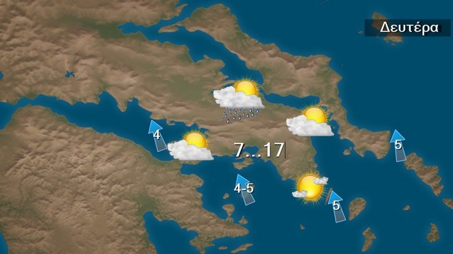 Οι άνεμοι θα πνέουν νότιοι νοτιοανατολικοί 4 με 5 μποφόρ και η θερμοκρασία θα κυμανθεί από 7 έως 17 βαθμούς Κελσίου.