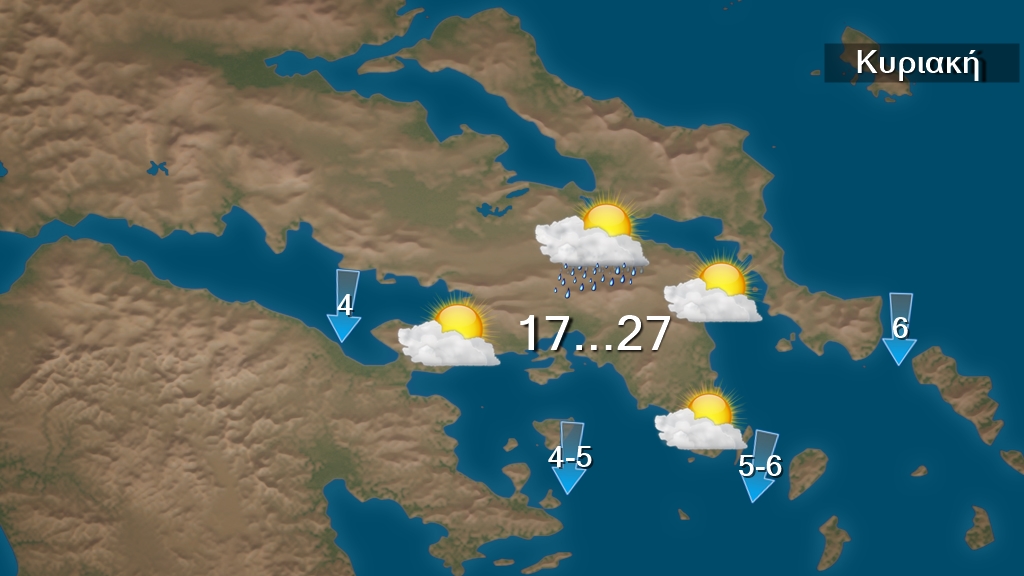 Στην Αττική προβλέπονται αρχικά λίγες νεφώσεις πρόσκαιρα αυξημένες το μεσημέρι και το απόγευμα, οπότε θα σημειωθούν τοπικοί όμβροι Οι άνεμοι θα πνέουν βόρειοι βορειοανατολικοί 4 με 5 και στα ανατολικά 5 με 6 μποφόρ. Η θερμοκρασία θα κυμανθεί από 17 έως 27 βαθμούς Κελσίου.