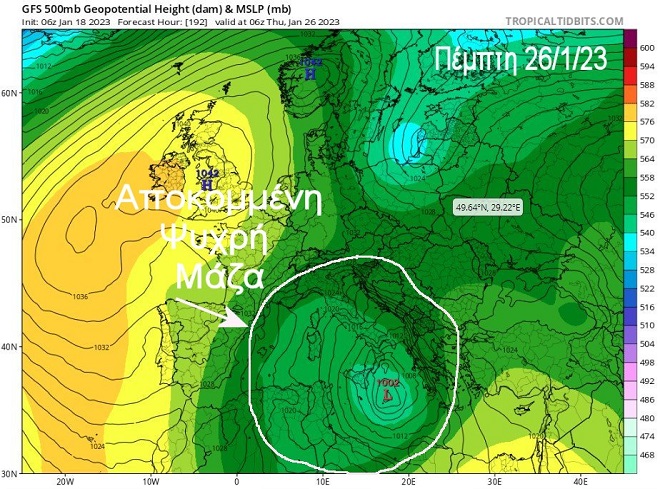 Μετά την κατάβαση των πολύ ψυχρών και ασταθών αερίων μαζών που είδαμε προηγουμένως στη κεντρική Μεσόγειο, θα δημιουργηθεί ένα εκτεταμένο αποκομμένο χαμηλό το οποίο θα στροβιλίζεται γύρω από τον εαυτό του, δημιουργώντας επιφανειακά χαμηλά τα οποία θα συνεχίσουν να προκαλούν υετό στη χώρα μας αλλά και γενικότερα σε όλα τα νότια, όπως είδαμε στο προηγούμενο video.