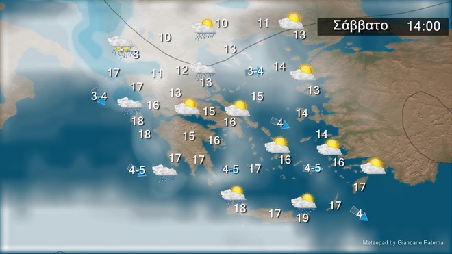 Νεφώσεις παροδικά αυξημένες, με τοπικές βροχές στα δυτικά και από το απόγευμα στην Κρήτη και πιθανώς στις Κυκλάδες. Τοπικά περιορισμένη ορατότητα τις πρωινές και τις βραδινές ώρες στα ανατολικά. Οι άνεμοι θα πνέουν στα δυτικά από δυτικές διευθύνσεις 3 με 5 μποφόρ. Στα ανατολικά από βόρειες με την ίδια ένταση στρεφόμενοι από το απόγευμα σε δυτικούς νοτιοδυτικούς 4 με 6 μποφόρ.